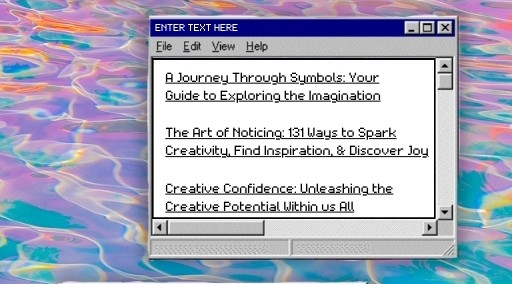 My favorite part of this collection, however, is the aesthetic. I designed it as an interactive PDF with a retro web theme. All 100+ websites were chosen for creativity, curiosity, and long-term usefulness. It brings together tools, generators, resources, and hidden corners of the web that help you make things, organize ideas, build an online presence, and stay inspired without relying on algorithms. The links are divided by theme—ranging from creative generators and graphic resources to writing tools, website layouts, inspiring essays, and free PDFs—so you can browse with intention or wander freely. Think of it as a personal bookmark folder made public: practical, inspiring, and designed to be returned to whenever you need new input or a fresh direction. Every page contains clickable links that will direct you to their sources.